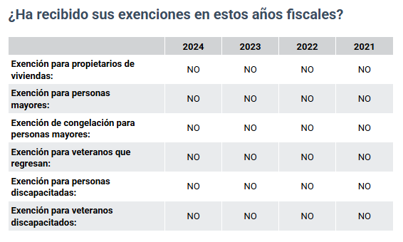 Desplácese hacia abajo y verá una tabla con sus exenciones. Si aparece la palabra “No”, como se muestra en la tabla, es posible que esté dejando pasar un ahorro significativo.